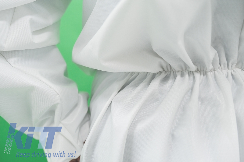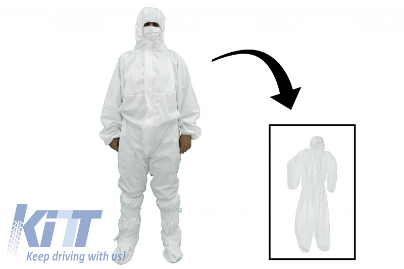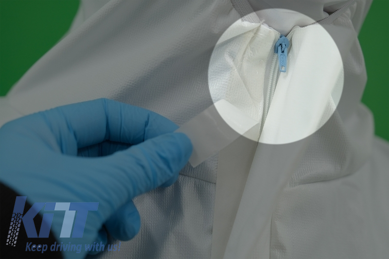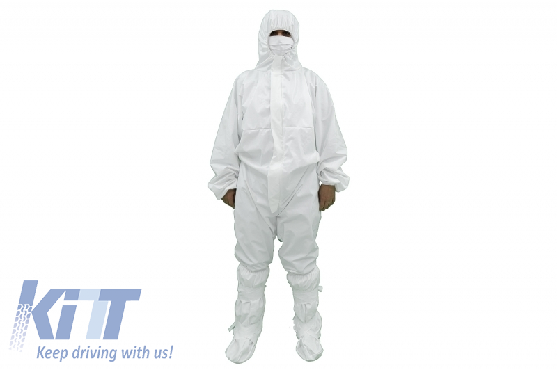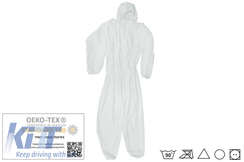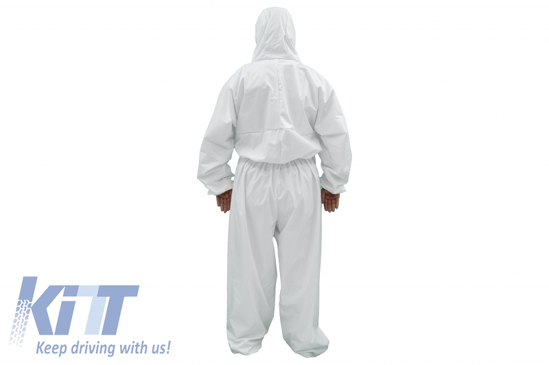 Cotton and Polyethylene white suit with hood, disposable, zipper closure, elastic cuffs, size XXL (in environments where non-aggressive particles, dust, splashes, dirt are present).