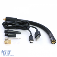 An integrated flashlight with an additional red flashing function provides safety and convenience in the dark or in emergency situations. The included USB charging cable is not only suitable for charging the compressor but also compatible with smartphones with a USB-C port.