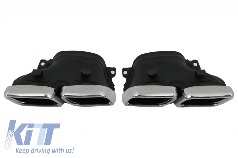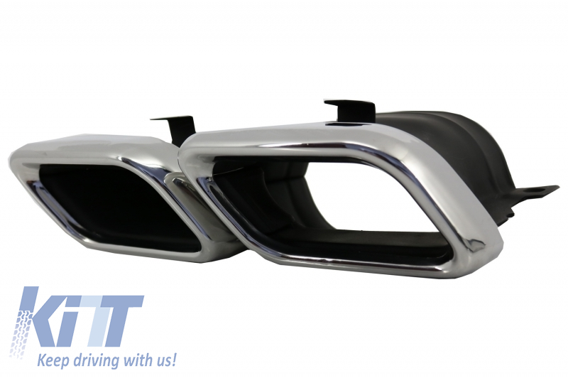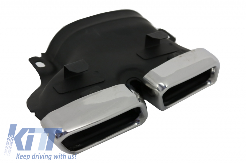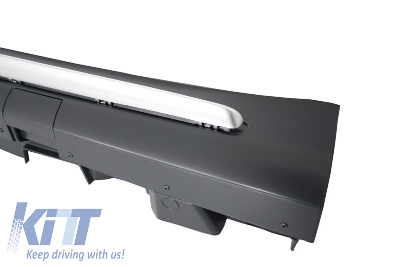 Rear bumper equipped with double outlet exhaust, PDC Holders and brushed aluminum rear molding spoiler.