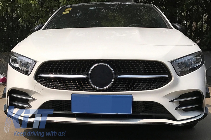 Buy it now Front Bumper Lip Extension suitable for MERCEDES A-Class W177 V177 (04.2018-up) A35 Design Black Edition!