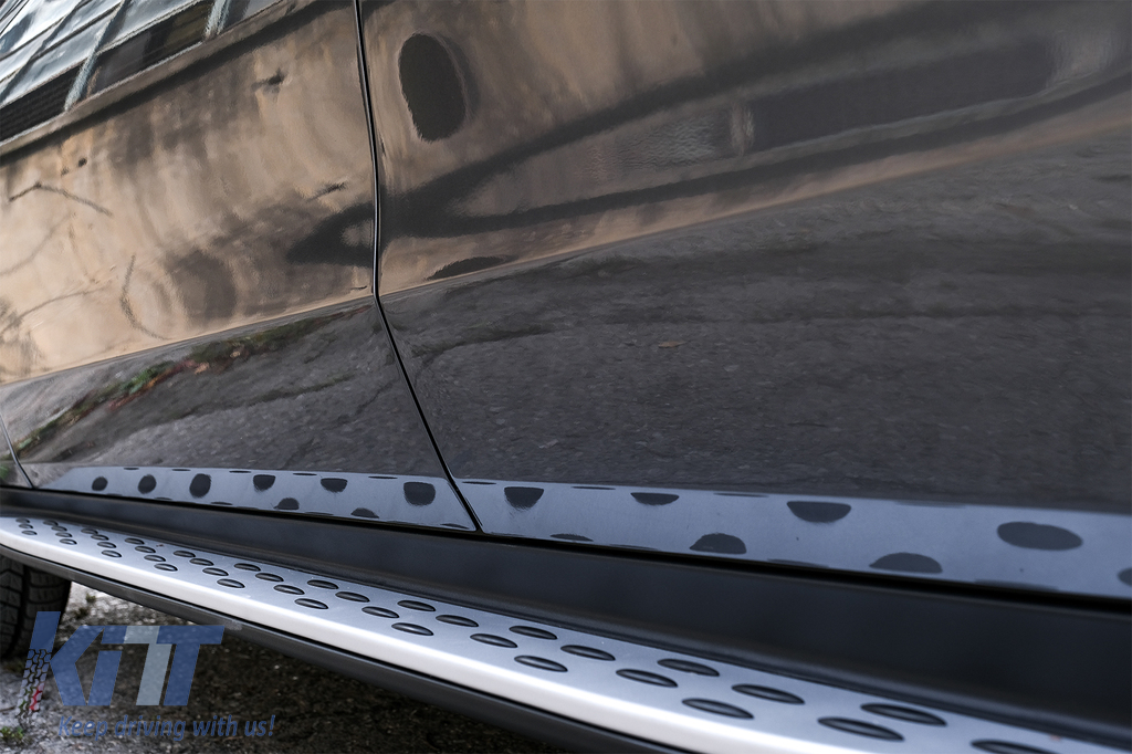 *Suitable also for AMG Line VersionsNot suitable forMercedes with code 5U1 (rear axle aluminum)DescriptionSide steps made of high quality 304 stainless steel, aluminium and PVC.Fitting and InstallationFitting instructions not included.