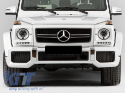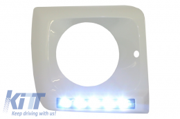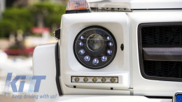 Headlights Covers White with LED DRL Daytime Running Lights suitable for Mercedes G-Class W463 (1989-2012) G65 Design Chrome (CODE: HCMBG65WC)