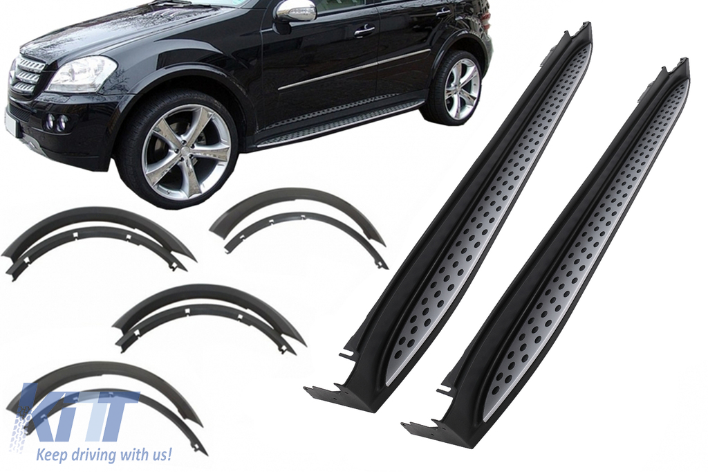 Kit Running Boards Side Steps with Fender Flares Wheel Arches suitable for Mercedes M-Class ML W164 (2005-2011) (CODE: CORBMB02FF)