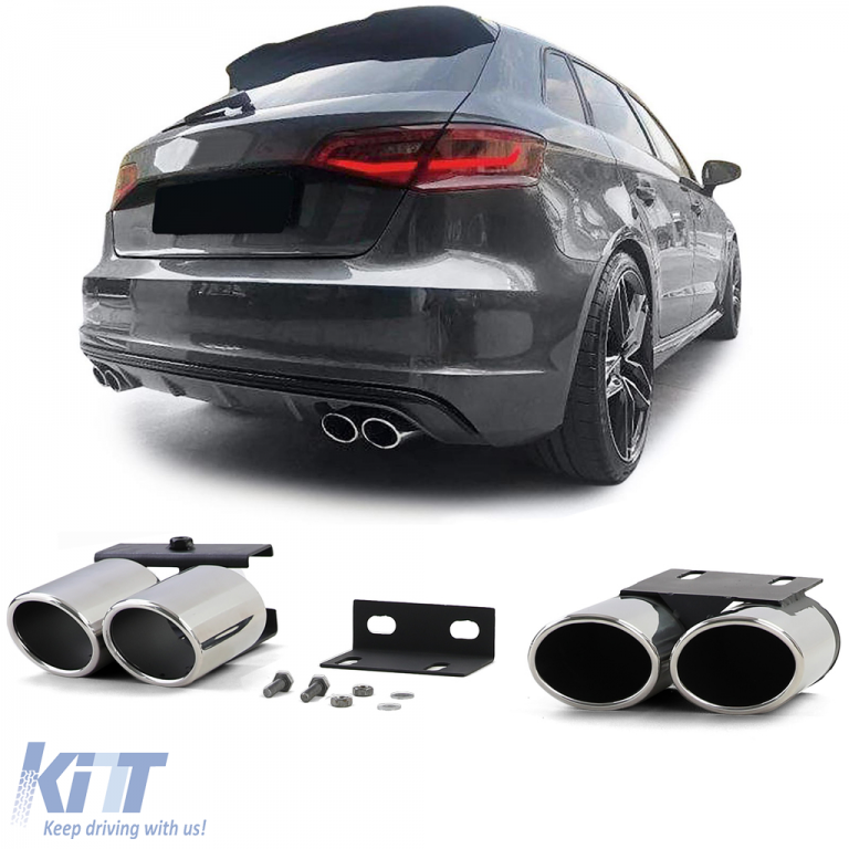 Not compatible with S-Line trim or with stock tailpipe trims, as these are often welded on.