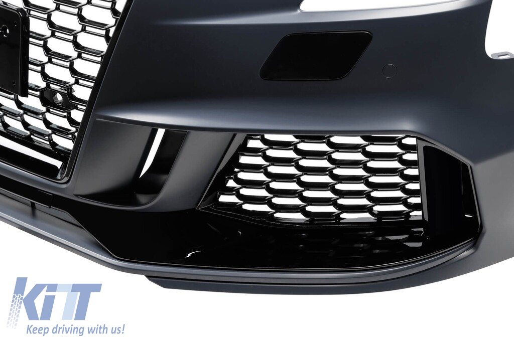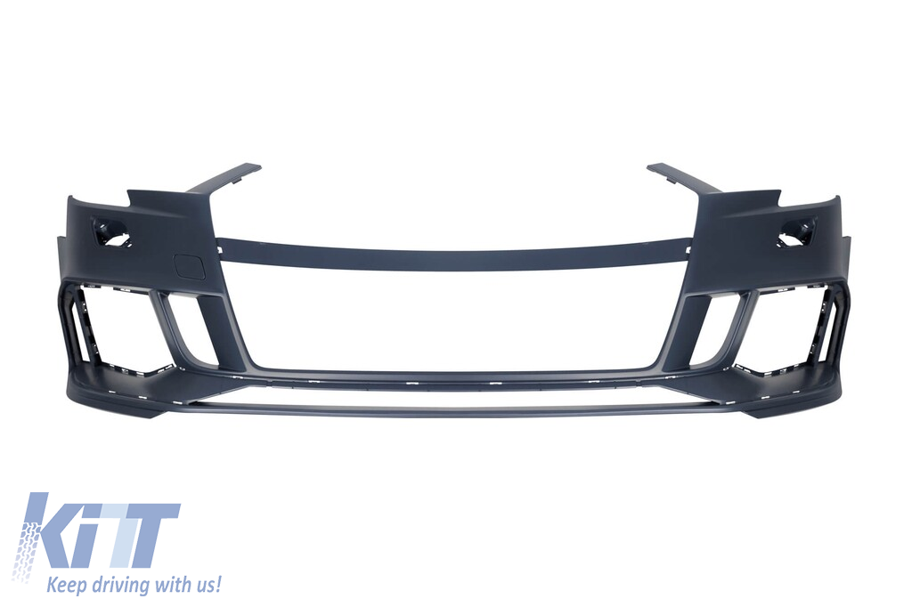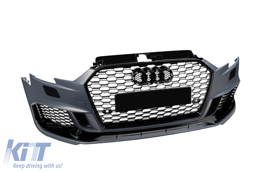 RS3 bumper suitable for street hooligans from the A3 series of the Bavarian titan Audi. This is not just another tuning bumper that merely clutters the already well-shaped design of your Audi. Elegantly refined, with aggressive lines highlighting the primal essence of every sports car, featuring two additional openings in place of the fog lights to enhance aerodynamics and cool the brake calipers. The bumper is made from elastic, impact-resistant, high-quality ABS plastic. Every corner and opening of the bumper has been carefully processed to avoid unpleasant sharp edges, thus achieving the perfect element for a 100% fit.