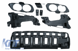 Front Bumper equipped with central grille, PDC holders, central lower grille, side grilles and matte black brushed moldings.