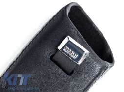Original leather key case suitable for your BMW. Made from high-quality black leather with a metal fastening ring, highlighting the well-shaped metal rail with the inscription 'BMW', securely and elegantly holding your car key. In the package, you will find an additional tool for the installation and removal of the retaining pin. Suitable for the keys of the following BMW models: