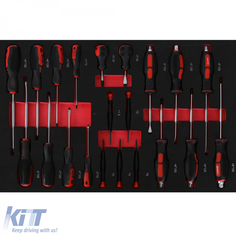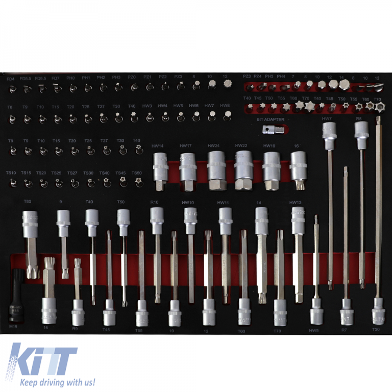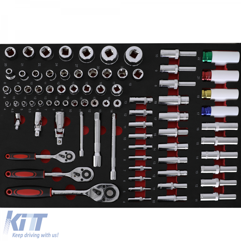 The tool trolley comes with a 258-piece tool set that covers various applications. The milled foam inserts ensure neat storage without resorting to plastic.