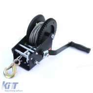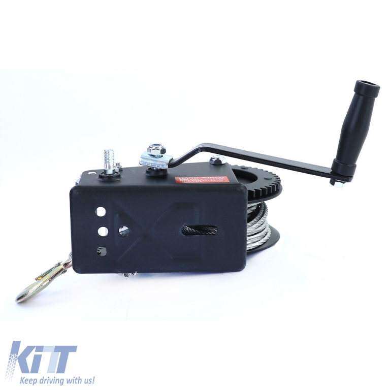 Product Details: - Brand: Tenzo-R - Profi Hand Winch - Color: Black - Very high-quality and robust workmanship - Strong pulling force up to 1500 kg - Two gear ratios: 5.1:1 and 12.2:1 - Large power transmission through hand crank - Ideal for pulling cars, trailers, caravans, boats, etc. - Sturdy hook for secure attachment of the load