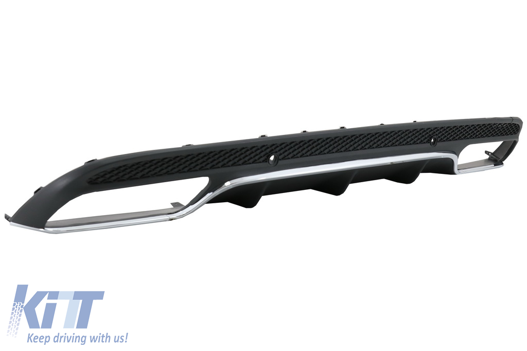 DescriptionRear Bumper Air Diffuser C63 Design crafted in high quality ABS plastic, equipped with double exhaust outlets