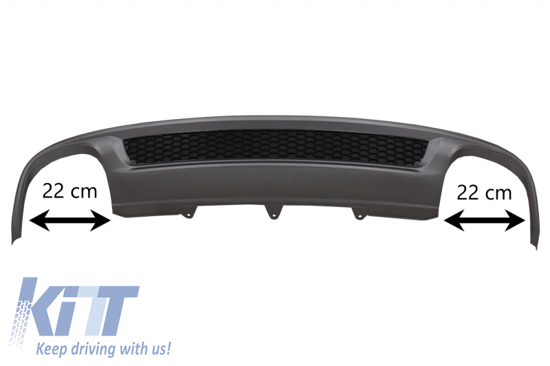 Rear Bumper Valance Air Diffuser suitable for Audi A4 B8 Facelift Limousine Avant (2012-2015) with Carbon Fiber Exhaust Muffler Tips Polished S-Line Design only Standard Bumper