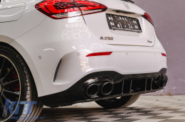 3. Rear Bumper Valance Diffuser with Black Exhaust Tips and Mirror Cover suitable for Mercedes A-Class V177 Hatchback (05.2018-2022)