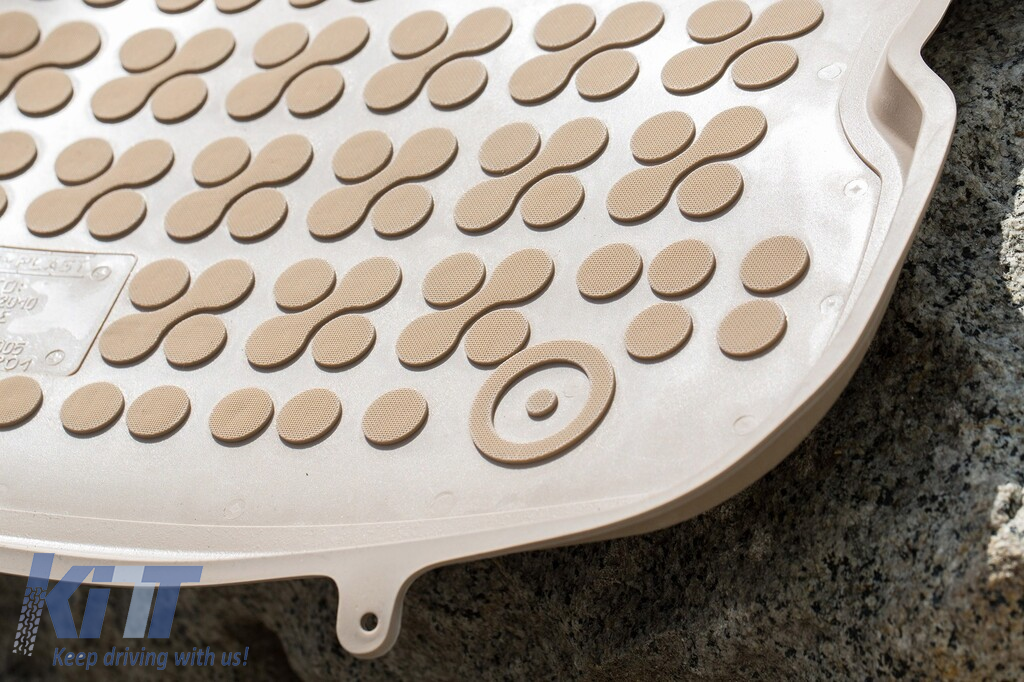 Depending on the vehicle, the set may include front and rear mats. The raised protective edge of approximately 3cm helps contain dirt and liquids more effectively, while maintenance remains simple, as cleaning usually requires only water. The mats are odor-free, PVC-free, and tested for harmful substances.