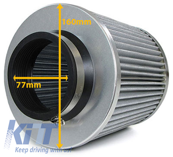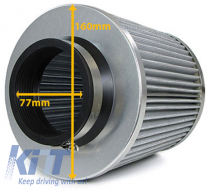 Universally suitable for vehicles with a round air filter connection from 60 mm to 76 mm.