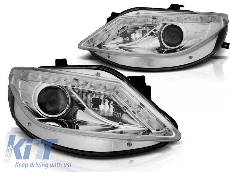 The headlights are one of the most important elements of the vehicle. Good visibility greatly depends on them. This model of headlights features an LED strip for daytime running lights or position lights. A high-quality glass lens ensures perfect light output graphics, enhancing and directing the dispersion of emitted light. The headlights are certified according to E-mark. Their innovative design refreshes the vehicle's appearance, making it more futuristic and attractive. With these headlights, you will increase visibility of the road surface by up to 200%.