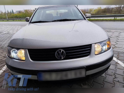 The headlights are one of the most important elements of the vehicle. Good visibility greatly depends on them. This model of headlights can offer you parking lights in the form of 'Angel Eyes'. A high-quality glass lens takes care of the perfect light output, improving and directing the dispersion of emitted light, regardless of whether halogen or xenon bulbs are used. The 'Angel Eyes' parking lights consist of round/oval light units. Depending on their model, they can emit warm white or cool white light. They can be used as daytime running lights. This model of headlights uses halogen bulbs for both low and high beams, with each model having an individual configuration. You can find complete information regarding the type of bulbs used in the headlights in the 'Technical Information' section. The headlights are E-mark certified. Their innovative design refreshes the vehicle's appearance, making it more futuristic and attractive. Thanks to these headlights, you will increase visibility on the road by up to 200%.